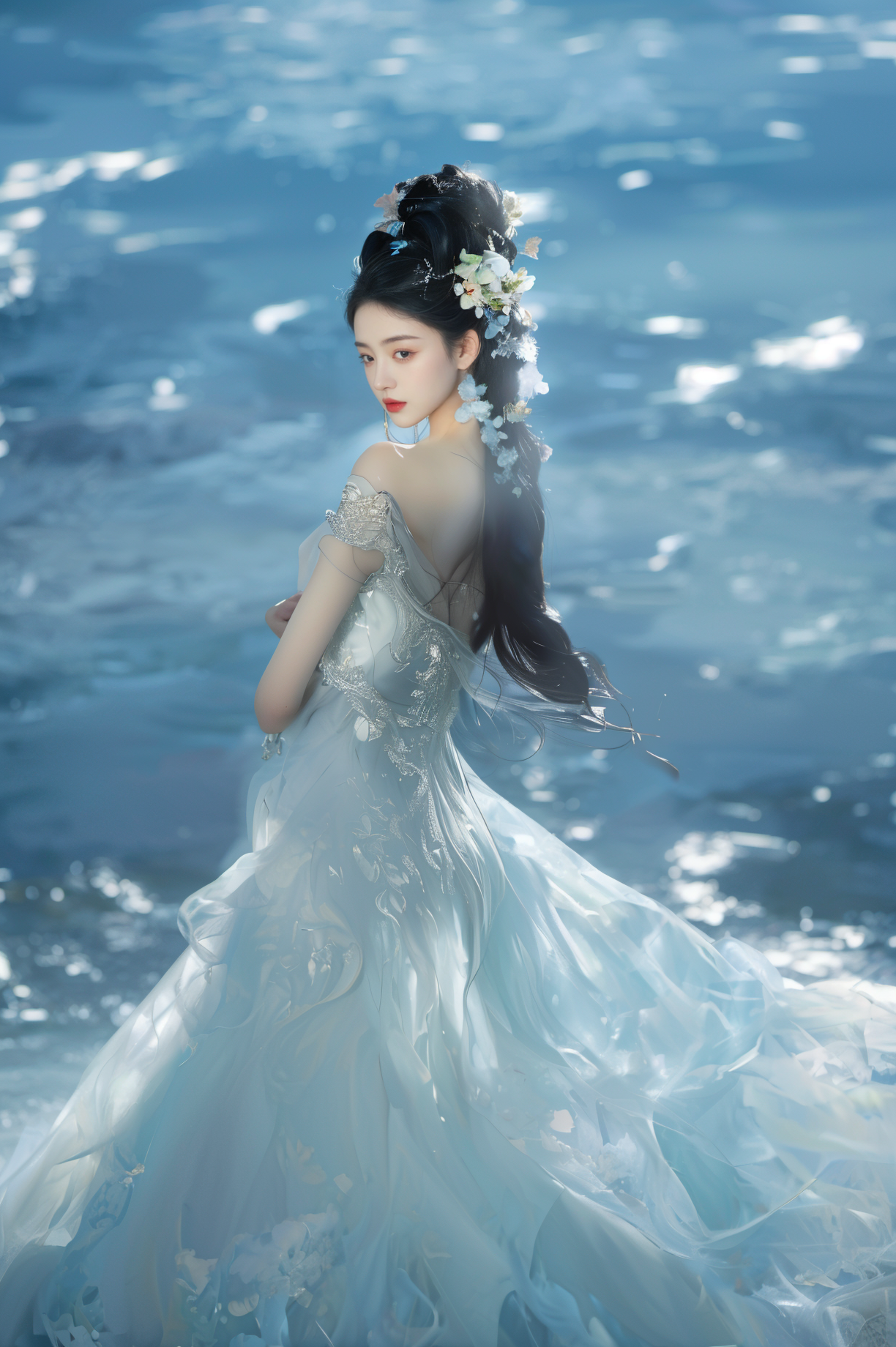 highres, 8k, absurdres 1girl, moon, ocean, flower, <lora:MengX_girl_Mix_v30:0.4> <lora:zhongfenghua:0.15> <lora:add_detail:-1>