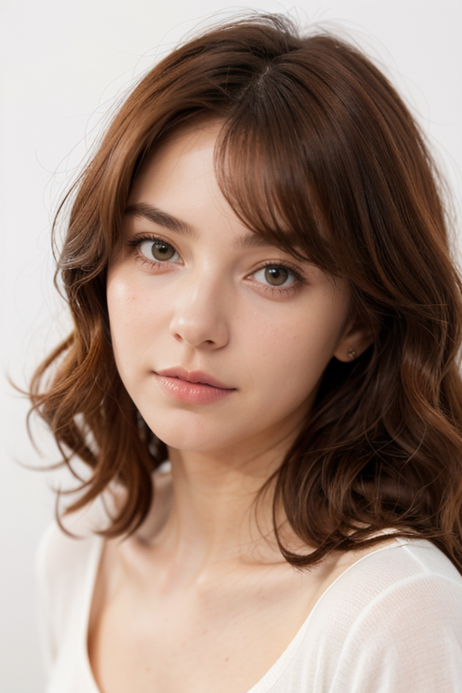 1girl, face, curly hair, red hair, white background