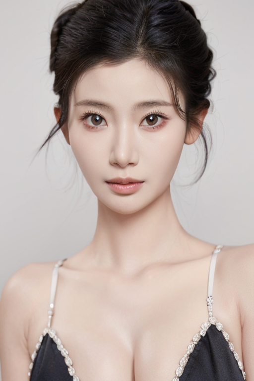 LinYueQing,1girl,realistic,portrait,masterpiece, best quality, ,black_eyes,black hair, cleavage, 1girl, solo,detailed face,bikini,looking_at_viewer, (hair bun),<lora:LinYueQingV4:0.9>