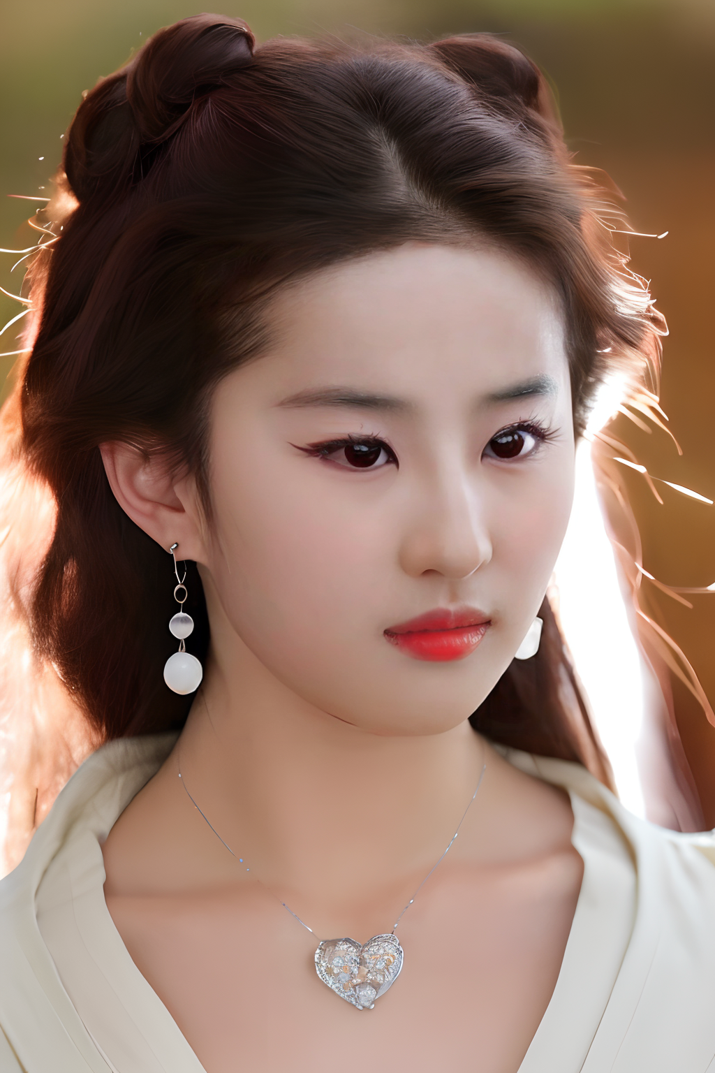 liuyifei <lora:liuyifei_dragon_mj7_8:0.8> <lora:Nakatsu_Mariko_v1.0:0.8>,Nakatsu_Mariko,looking at viewer,(best quality, masterpiece:1.4),(realism:1.2),(realisitc:1.2),(absurdres:1.2),(photorealistic:1.3),Realistic Skin,Solo,an extremely delicate and beautiful,CG,unity,8k wallpaper,Amazing,finely detail,masterpiece,official art,extremely detailed,CG,unity,8k,wallpaper,incredibly,huge filesize,ultra-detailed,highres,extremely detailed,circle earrings,heart shaped necklace,brown hair,long hair,curly hair,red lips,