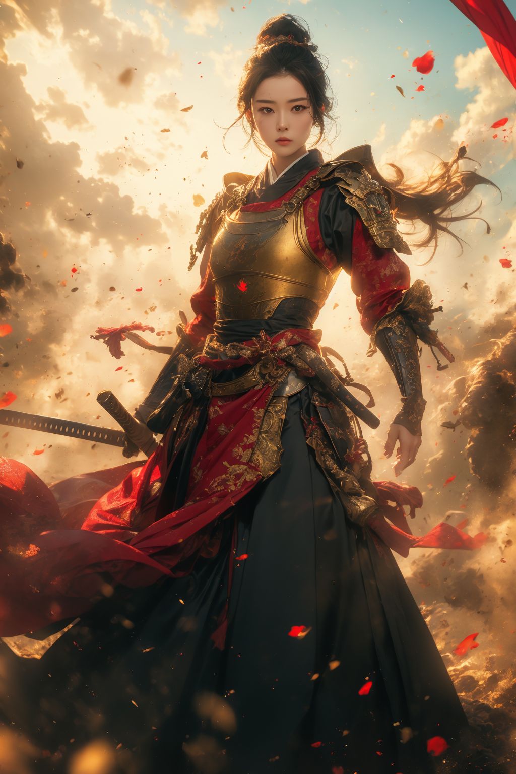 1girl,full body,(best quality, masterpiece:1.4),(realism:1.2),(realisitc:1.2),(absurdres:1.2),(photorealistic:1.3),Realistic Skin,Solo,an extremely delicate and beautiful,CG,unity,8k wallpaper,Amazing,official art,extremely detailed,incredibly,huge filesize,ultra-detailed,looking at viewer,<lora:Samurai:0.7>,<lora:niji_wushi:0.7>,full body,, (masterpiece, best quality, high quality, highres, ultra-detailed),