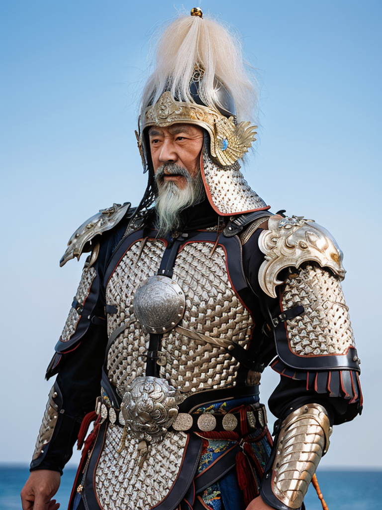 Chinese_armor,a 65 year old chinese man,solo,shoulder_armor,helmet,blue_sky,detailed_eyes,looking at viewer,masterpiece, best quality, perfect eyes, perfect face, perfect lighting, 8K,perfect anatomy, <lora:ä¸å½ç²è-æ-å±±æç²ï¼Chinese_armor,Ming,Mountain Pattern Armorï¼v1.0:0.7>