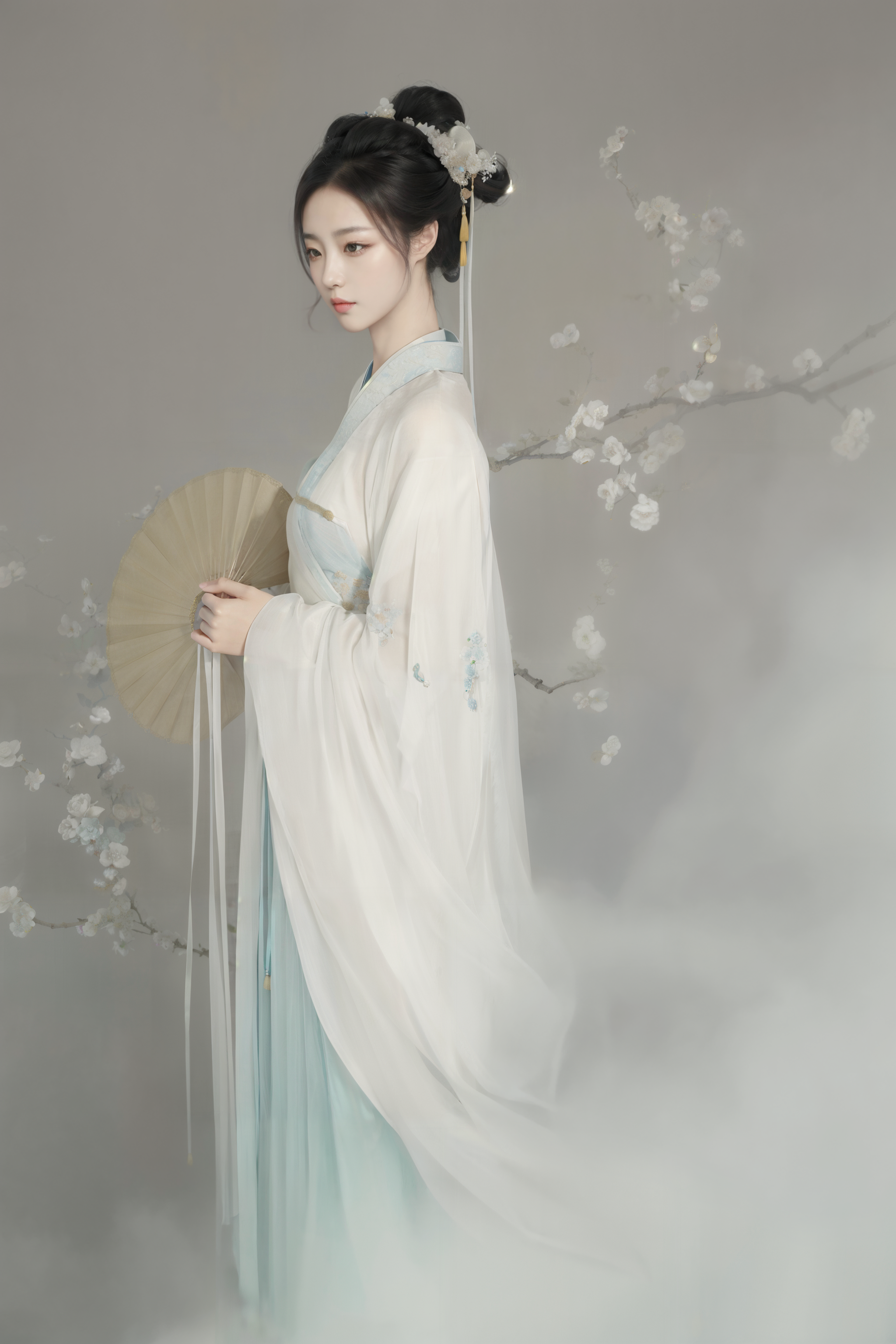 <lora:GoodHands-beta2:1>,masterpiece,ultra_detailed,highres,absurdres:1.2,photo realistic,best quality,highly detailed,photography,8K,HDR,arafed woman in a white dress holding a fan and a fan,white hanfu,palace,a girl in hanfu,hanfu,beautiful render of tang dynasty,jingna zhang,realistic. cheng yi,inspired by Xia Gui,ancient asian dynasty princess,by Lü Ji,inspired by Zhao Mengfu,as an elegant noblewoman,<lora:add_detail:0.4>,<lora:雾里晴川_V7滤镜:0.3>,