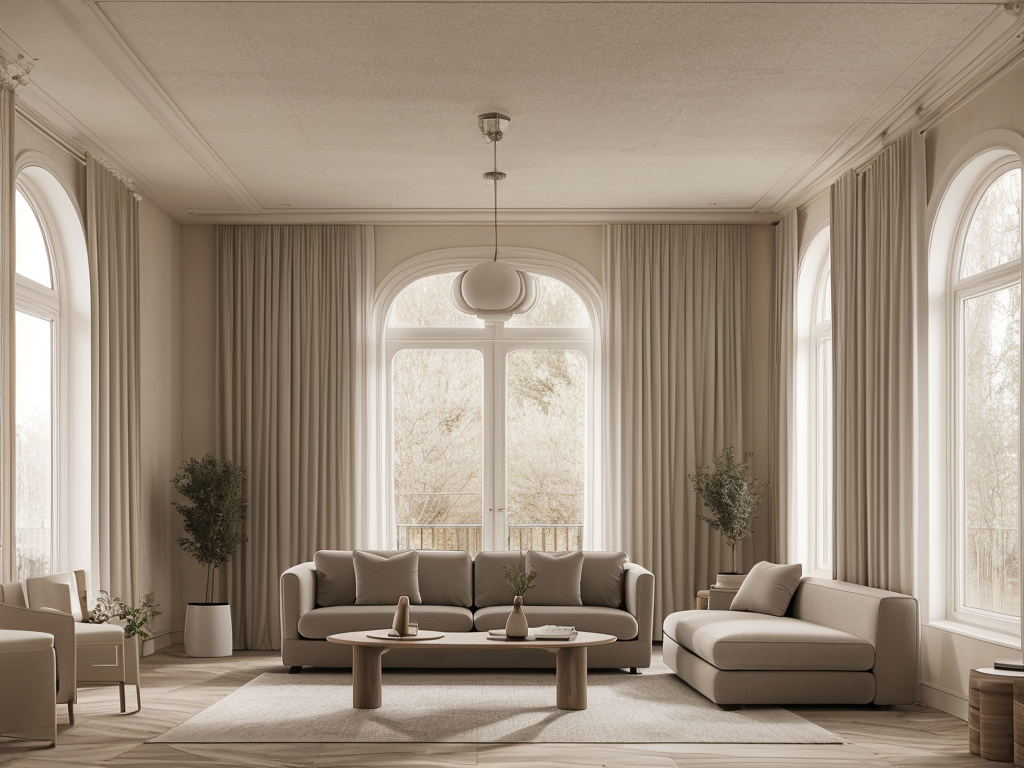 Photos of interior, sofa, window, ceiling, curtain, best quality, masterpiece, high quality, real, realistic, super detailed, full detail, 8K,Lao Chen, modern beige, indoor