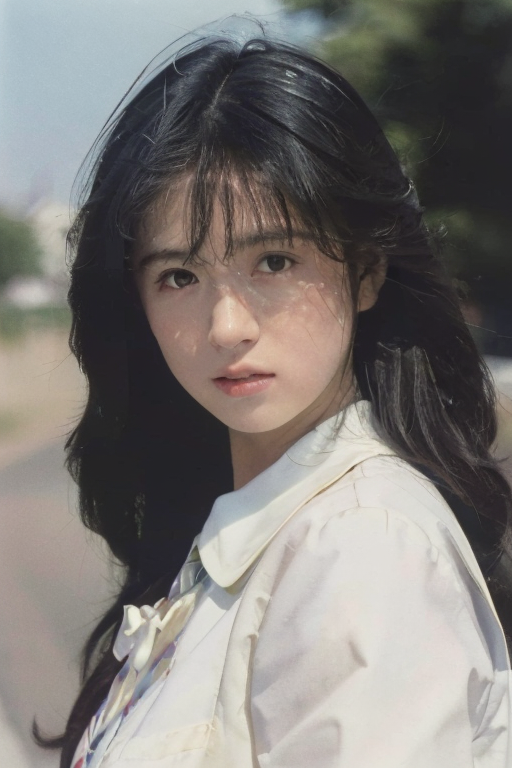 (masterpiece, realistic, ultra high res, high quality:1.2),1girl,school uniform, closed mouth, (young),(no make-up), black hair,portrait, old photo, 80s style , dynamic pose, studio,(akinanakamori) <lora:akinanakamori:0.7> <lora:80s Japan 2:0.5> Color film photograph - 1980s - Tokyo - Japan <lora:retromatte_v3:0.7> VINTAGE, (masterpiece, realistic, ultra high res, high quality:1.2)