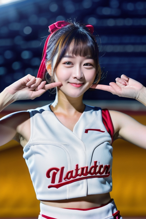 nice hand,perfect hand, <lora:GoodHands-beta2:1> CWLAN,1girl,short hair,WHITE RED BASEBALL cheerleader uniform,vest,solo,baseball stadium,smile,realistic,(looking at viewer, ),standing,medium breasts, best quality,masterpiece,illustration,an extremely delicate and beautiful,CG,unity,8k wallpaper,Amazing,finely detail,masterpiece,official art,extremely detailed CG unity 8k wallpaper,incredibly absurdres,huge filesize,ultra-detailed,highres,extremely detailed,beautiful detailed girl,realistic,full frontal,light contrast,blurry, <lora:LANLAN:0.9>, <lora:LCM-LoRA_sd15:1>, <lora:add_detail:0.5>