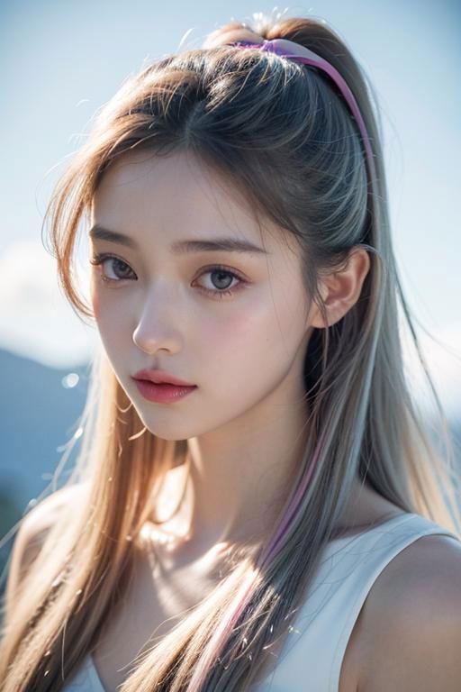 1girl,,Sweet,Kawaii,half body portrait,(8k, best quality, masterpiece:1.3),(best quality:1.0), (ultra highres:1.0), hair ribbons,watercolor, a beautiful woman, pastel colors, (Ink:1.1),high quality texture,Tiffany Blue background,extremely detailed,fractal art,colorful,highest detailed,dynamic angle,(castle on the cloud and mountain) 1girl,queen, silver hair, bright eyes,hair slicked back, black robe, open clouth, from above,highres,best quality,natural,a girl wears a purple dress with pink flowers,Blonde straight hair,pretty japanese girl, famous japanese idol, kawaii,, smoke, dimmed backlight, PEHighContrast, floating particles, dynamic Scene ,divine halo