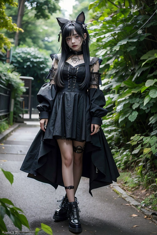 full body, looking at viewer, 1girl , gothic punk girl, forest, <lora:Gothpunkgirl-000009:0.7>