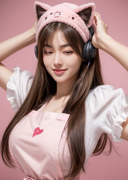 masterpiece,absurdres, incredibly absurdres, high quality, best quality, thick thighs, thick arms, <lora:GoodHands-beta2:1>,<lora:FakebreastsV4Del-000003:0.3>, fakebreasts, large breasts, thick thighs, large areolae,<lora:add_detail:0.5>, feminine and muscular, beautiful upper body, sweaty abs, sultry body with sexy belly, muscular girl, fit girl, sexy body and face, flat chested, sexy hot body, sexy body, inspired by Hedi Xandt, attractive body, toned body, with abs,(pureerosface_v1:0.5), 1girl, apron, blush, fang, hair ornament, hat, heart, light brown hair, long hair, looking at viewer, natori sana, one eye closed, open mouth, pink apron, puffy short sleeves, puffy sleeves, red eyes, shirt, short sleeves, simple background, smile, solo, two side up, very long hair, virtual youtuber,a girl with long hair and pink dress, wearing a pink hat and holding her hands up, kemonomimi, kawacy, wearing cat ear headphones, nekomimi, anime girl with cat ears, cat ears on her head, official character illustration, blonde anime girl with long hair, cute anime catgirl, holo is a wolf girl, cat ears and tail