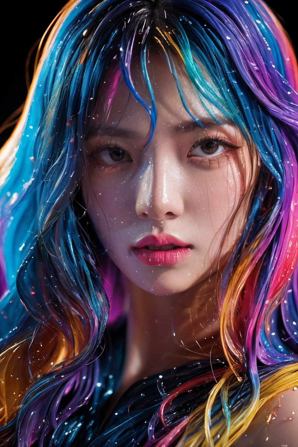 (colorful:1.3),five color palette,female,futuristic,(1girl:0.5),intricate,crisp quality,Wet inks line art,dreamy female portrait on black canvas,masterpiece,insanely detailed,4k resolution,detailed background,surreal,film grain,Explosive dust,<lora:Color palette_20231129204549-000014:0.7:lbw=1,1,0,0,0,1,1,1,1,1,1,1,1,1,1,1,1>,ray tracing,(best quality),(an extremely delicate and beautiful),incredibly_absurdres,colorful,intricate detail,