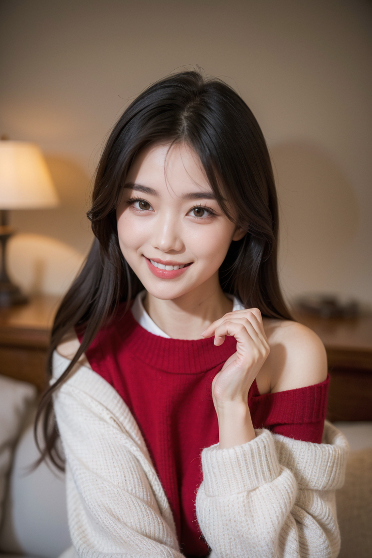 1girl, Long eyelashes, upper body, light smile, off shoulder, red sweater vest,
