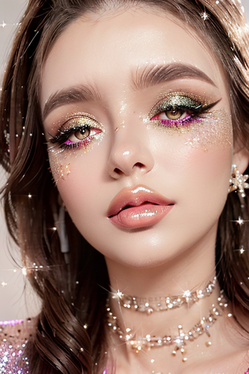 realistic, masterpiece, intricate, luxury, diamond, 1girl, shiny skin, (wavy hair:1.2), [Kylie Jenner | Ana de Armas], face with (glam makeup:1.2), (detailed pupils:1.2), squatting eyes, necklace, earrings, big lips, (glossy plump lips:1.2), eyelashes, eyeliner, (glitter glow eyeshadow:1.6) <lora:BimboMakeup_v1:1> <lora:eyeliner_v1:1> <lora:lip_slider_v21:1>