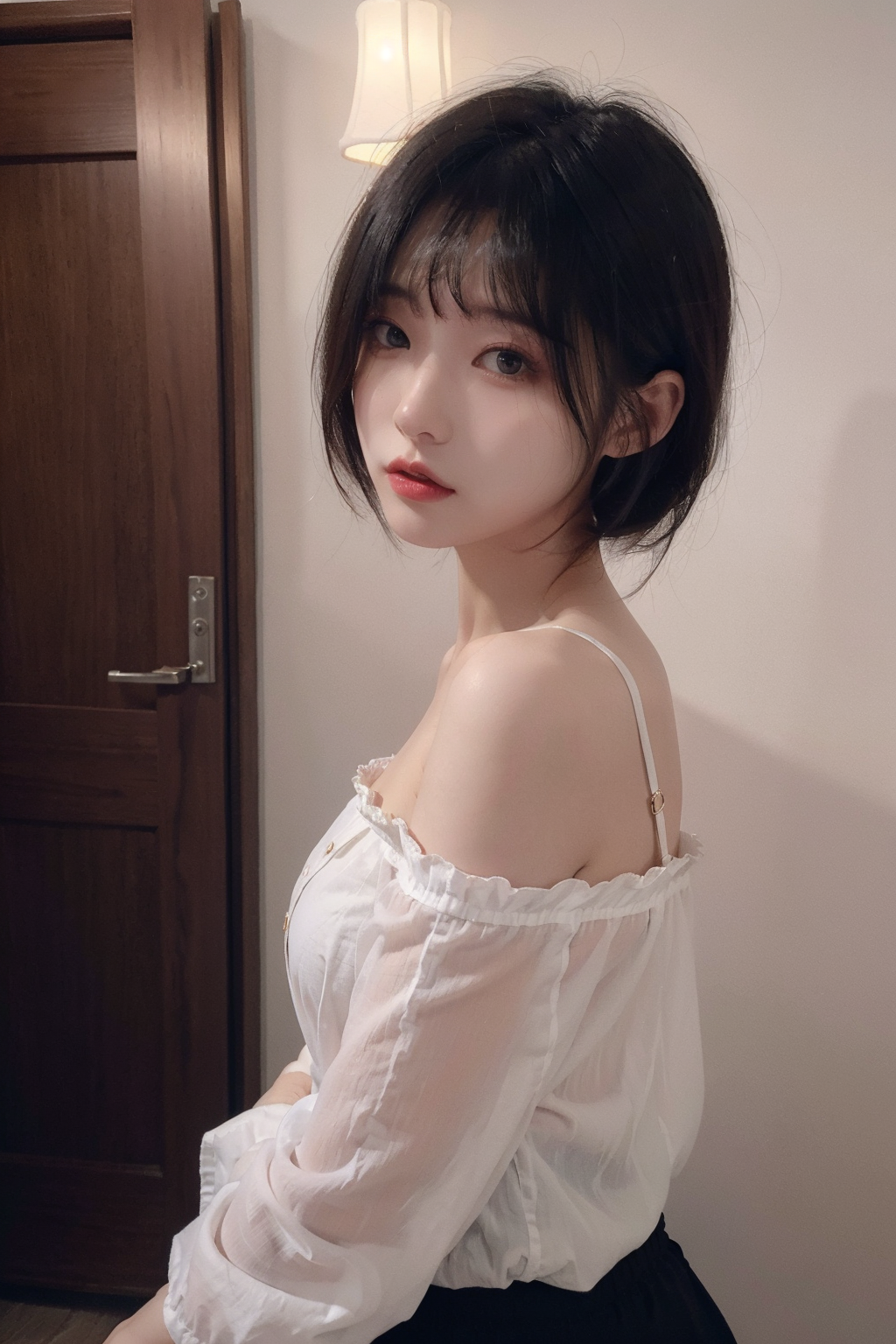 1girl, secret rendezvous, sheer blouse, short hair,small breast, sultry dark eyes, <lora:CandyttV2:0.45>candytt