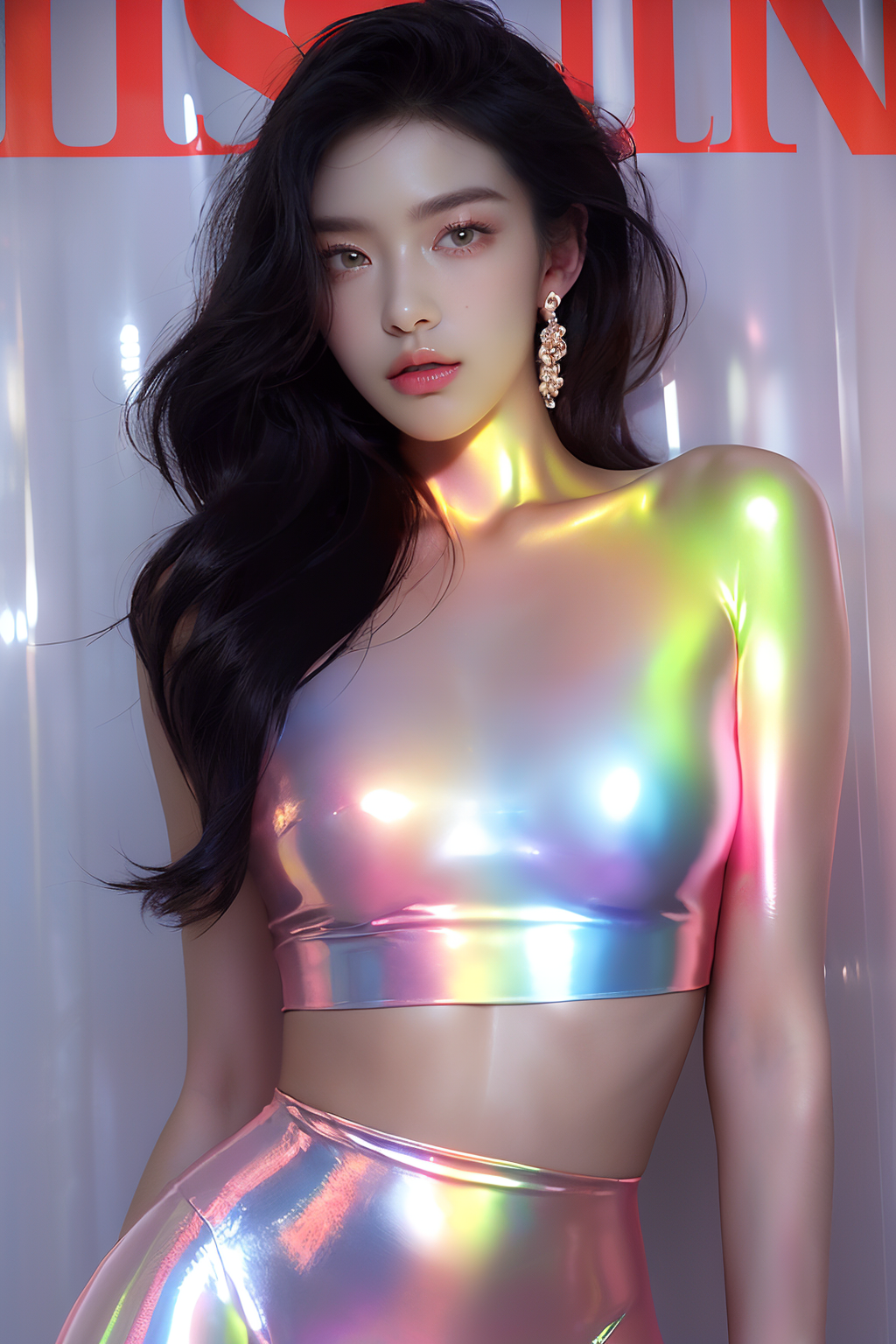 <lora:20231113-1699862111955-0016:0.8>,mother of pearl,Body shot,glossy,tight,Ethereal Reflections: a beautiful Girls,god light,neon,celluloid,oil skin,lustrous skin,dreamy glow,mirrored surfaces and pastel shades,1girl,solo,jewelry,black hair,long hair,green eyes,earrings,freckles,red lips,black dress,realistic,(best quality), (8k, best quality, masterpiece),ultra-detailed,(high detailed skin),glossy skin,contrapposto,female focus,model,(hot:0.7),sexy,fine fabric emphasis,wall paper,crowds,fashion,Lipstick,depth of field,street,in public,(Magazine cover-style illustration of a fashionable woman),posing in front of a colorful and dynamic background. (The text on the cover should be bold and attention-grabbing, with the title of the magazine and a catchy headline),
