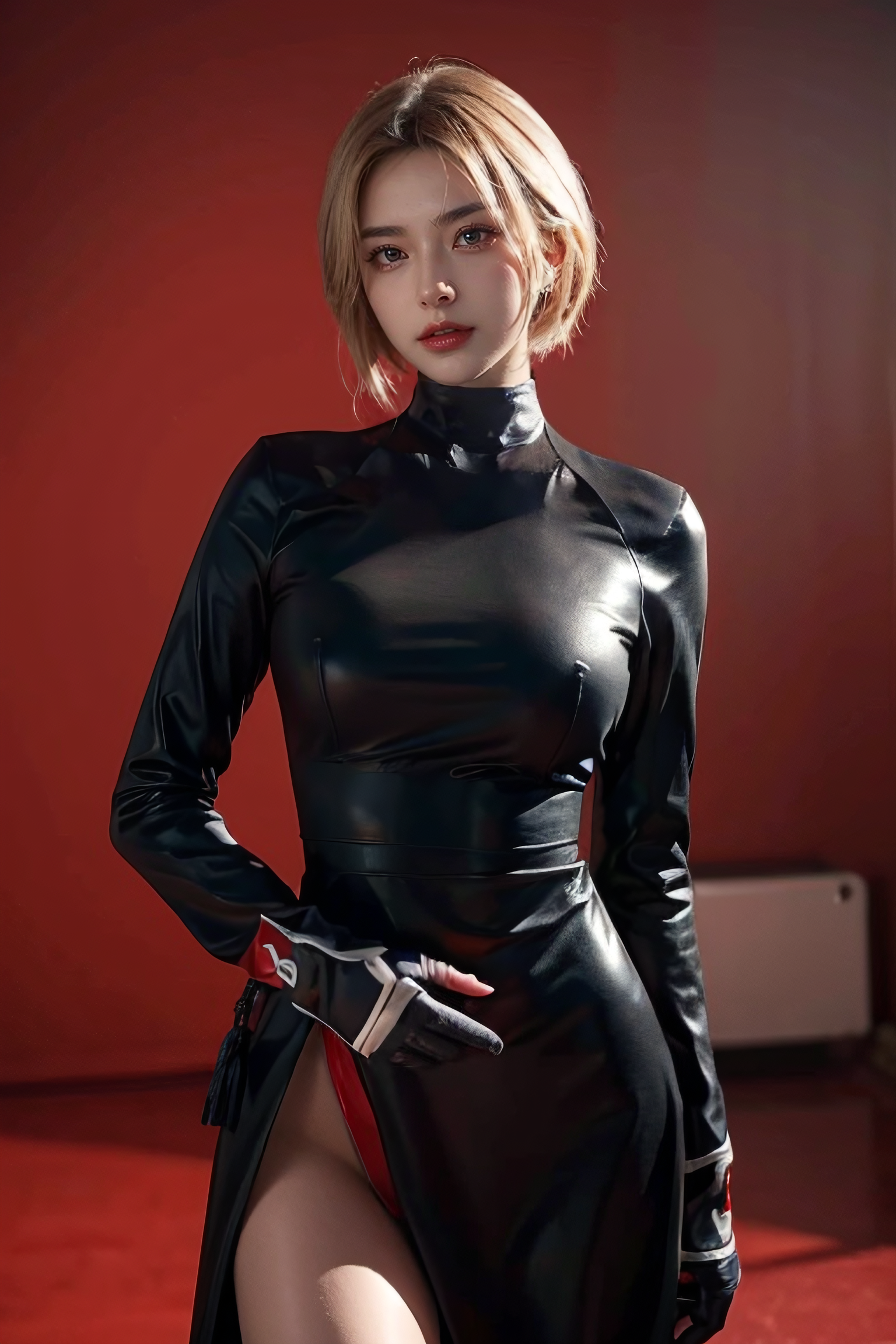 2b,highres, masterpiece, perfect ligthing, bloom, cinematic lighting, adult, mature, perfect skin, soldier outfit, looking at viewer,red_background, <lora:lin_faceV2:0.45>, <lora:y2b_v2-1:0.55>,<lora:asianGirlsFace_v1:0.15>,