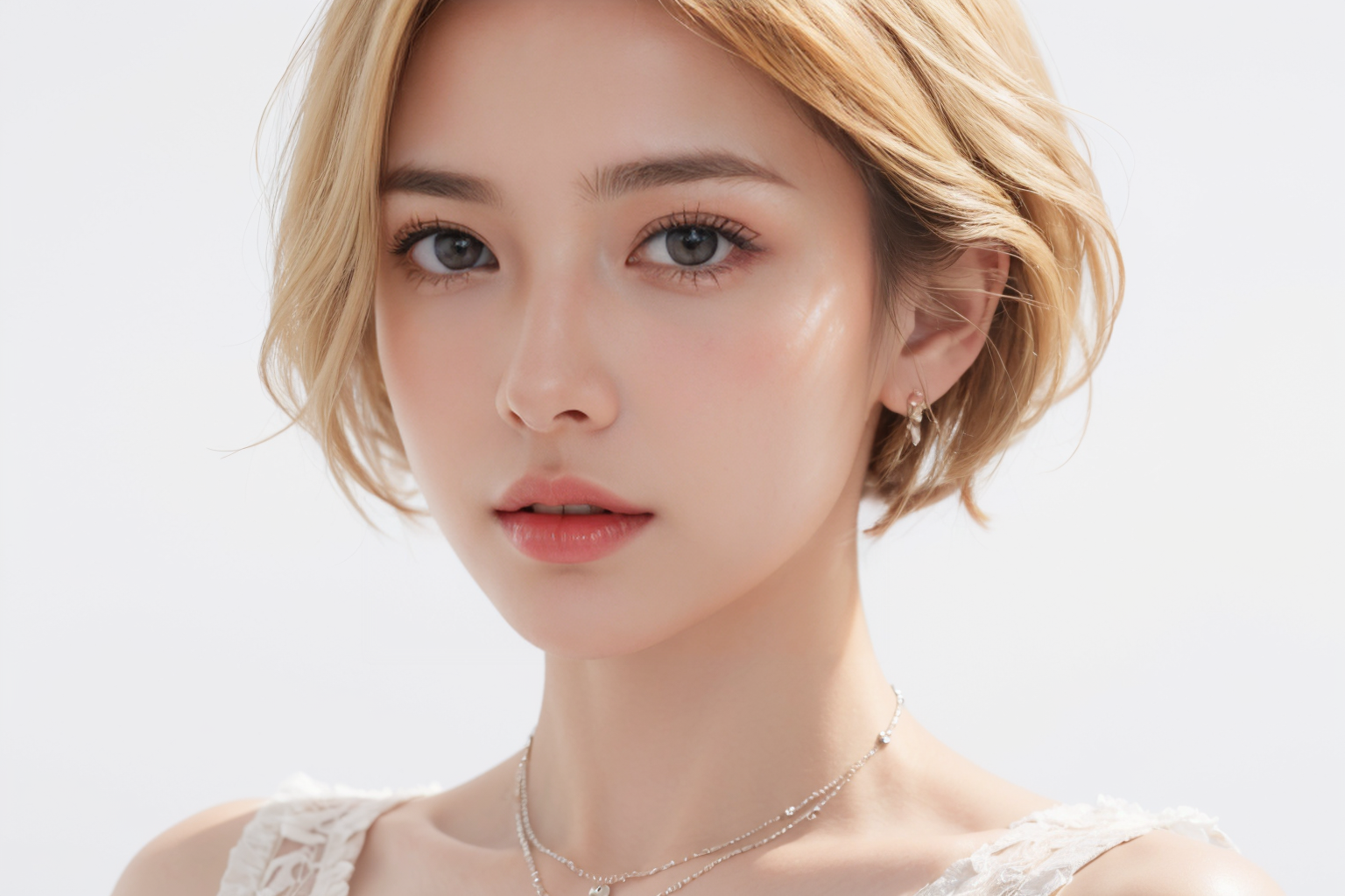 Best quality, ultra-detailed, 8k resolution, (photorealistic:1.5), RAW, deep shsadow, very detailed hair, perfect finger, good hand, cowboys shot, standing:1.2 (1girl , greek goddes, rich, busty, blonde, short hair), blush, delicate skin, shiny skin, intense gaze, necklace studio background, white background, empty <lora:cute tiktok girl mix_V30.2> <lora:MengX girl_Mix_V40:0.2>