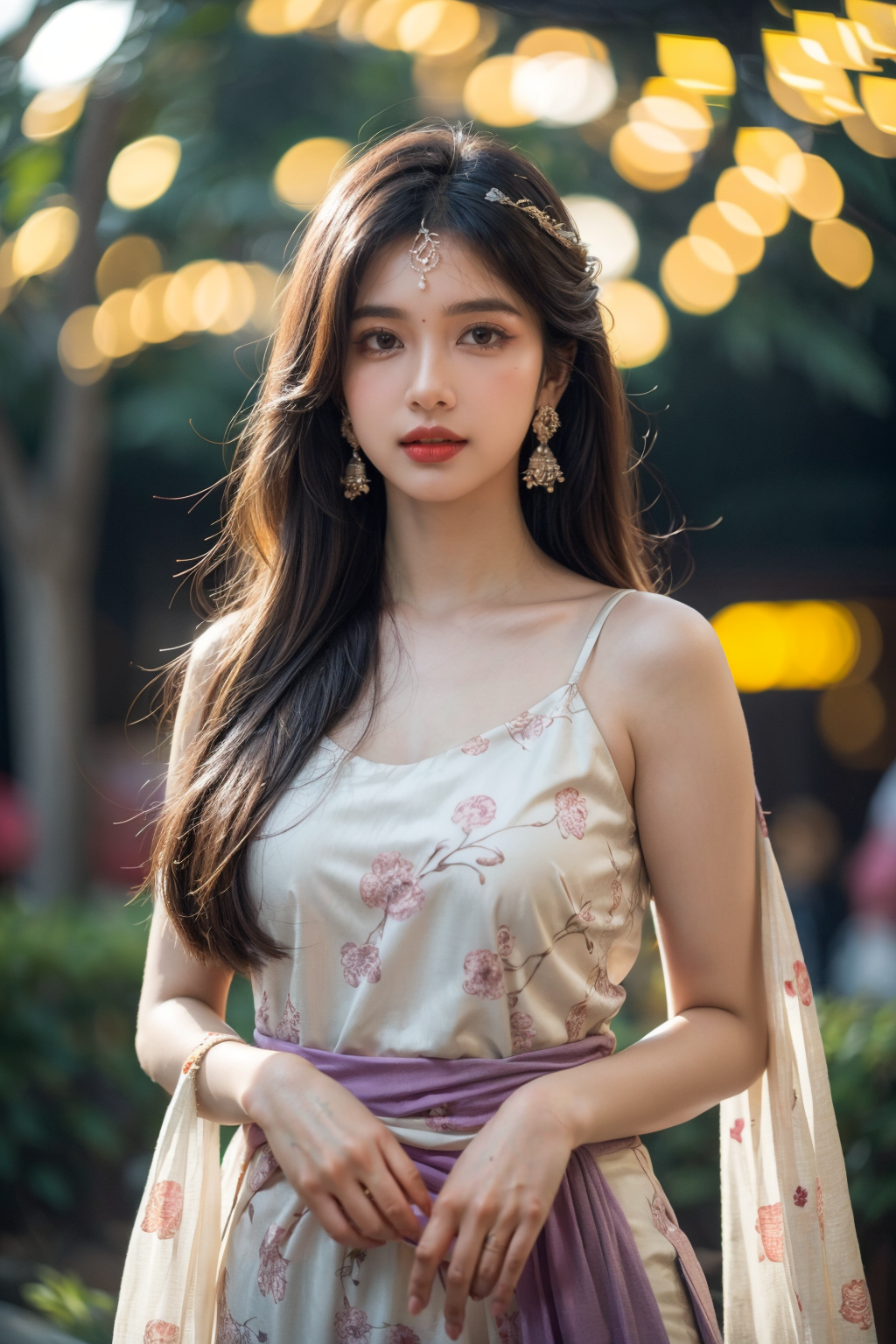 Best quality, ultra-detailed, 8k resolution, (photorealistic:1.5), RAW, deep shsadow, very detailed hair, perfect finger, good hand, waist up, action shot, dynamic pose , bokeh (1girl , churidar white and purple, intricate dress floral design, indian traditional clothes, (henna:1)) outdoor <lora:add_detail:0.8> <lora:GoodHands-vanilla:0.7> <lora:MengX girl_Mix_V40:0.2> <lora:cute tiktok girl mix_V3:0.4>