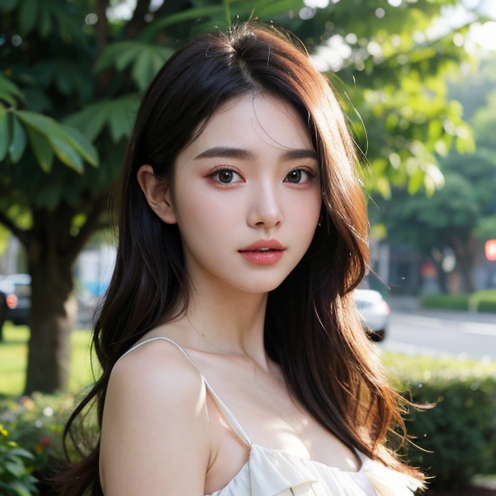 (goddess-like happiness:1.2), Kpop idol, full body, floating hairs, brown eyes, (RAW photo:1.2), (photorealistic:1.4), (masterpiece:1.3), (intricate details:1.2), naked, beautiful detailed, (detailed eyes), (detailed facial features), (25 years old female), petite, small breasts, narrow waist, (looking_at_viewer:1.4), from_front, slim_legs, (best quality:1.4), (ultra highres:1.2), cinema light, outdoors, (extreme detailed illustration), (lipgloss, eyelashes, best quality, ultra highres, depth of field, caustics, Broad lighting, natural shading, 85mm, f/1.4, ISO 200, 1/160s:0.75), (RAW photo, best quality), (realistic, photo-realistic:1.3), best quality ,masterpiece, an extremely delicate and beautiful, extremely detailed, unity, finely detail, masterpiece, best quality, extremely detailed CG unity 8k wallpaper, absurdres, incredibly absurdres, huge filesize , ultra-detailed, highres, extremely detailed, pureerosface_v1, beautiful detailed girl, extremely detailed eyes and face, beautiful detailed eyes, light on face, straight-on, staring, collarbone, bare shoulders, long eyelashes
