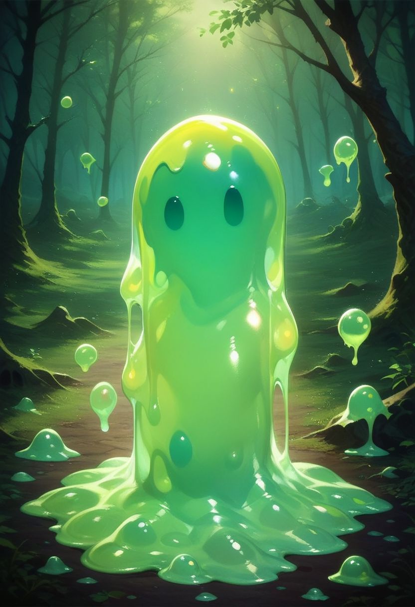 (slime:1.3), score_9, score_8_up, score_7_up, rating_safe, realistic, intricate detail, Cthulhu, green skin, bioluminescence, (slime \(substance\):1.3), acidzlime <lora:acidzlime:1>, smoke, bubbles, covered in a splashes of green acid, acid water, liquid acid, dark forest, night, volumetric lighting