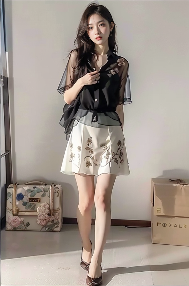 (full_body:1.3),stand,xinzhongshi,transparent shirt,(patterned clothes:1.3),<lora:1.5_perfect hands:0.8>,<lora:chinese-girl:0.7>,<lora:è ¿-000001:0.5>,the perfect hand,<lora:perfect hands:0.8>,arm,v_legs,white shirt,medium_skirt,skirt,standing,audience oriented,generous,(semi-perspective skirt:1.3),a patterned skirt,embroidery,milk white skirt,xinzhongshi2,high quality,highres,super clear,16k,hud,in the outdoor,realive,realistic,realistic,perspective skirt,color matching,<lora:xinzhongshi2:0.6>,, best quality, masterpiece, (photorealistic:1),ultra high res,highres,, illustration. media, delicate,8k wallpaper,soft light,official art, (realistic:1.2),1girl,