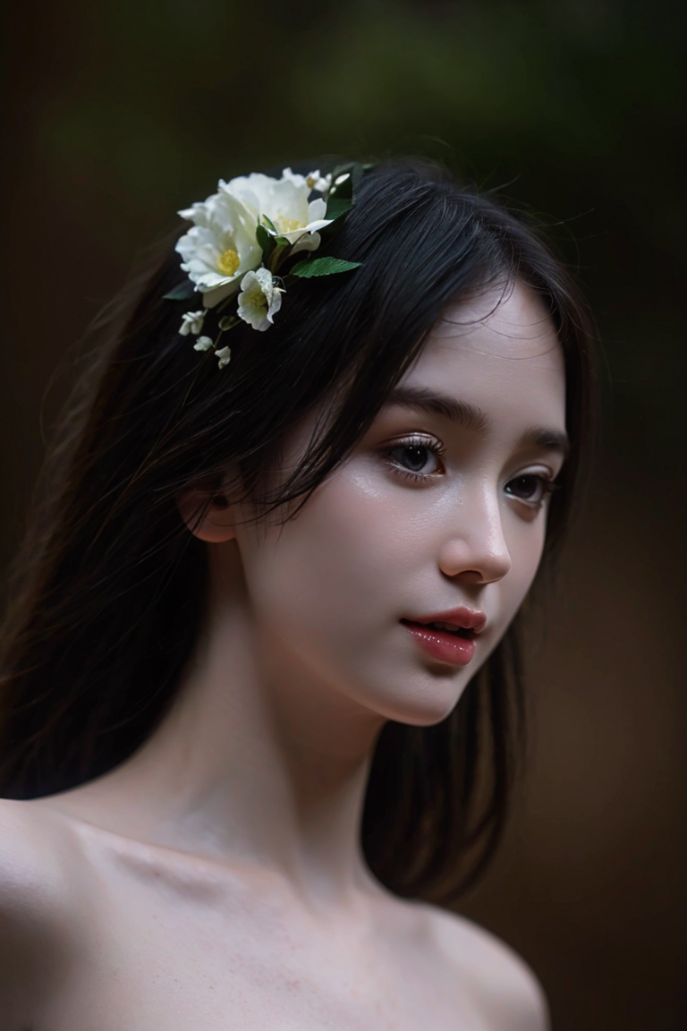 best quality, masterpiece, (photorealistic:1.4), Close up, 1 girl, Princess, upper body, Medieval, choker, flowers around, forest background, sweet girl, IDOL, moon, -- Face Details:1.7 -- <lora:MoosMST3:1> <lora:Rokki-01:1>
