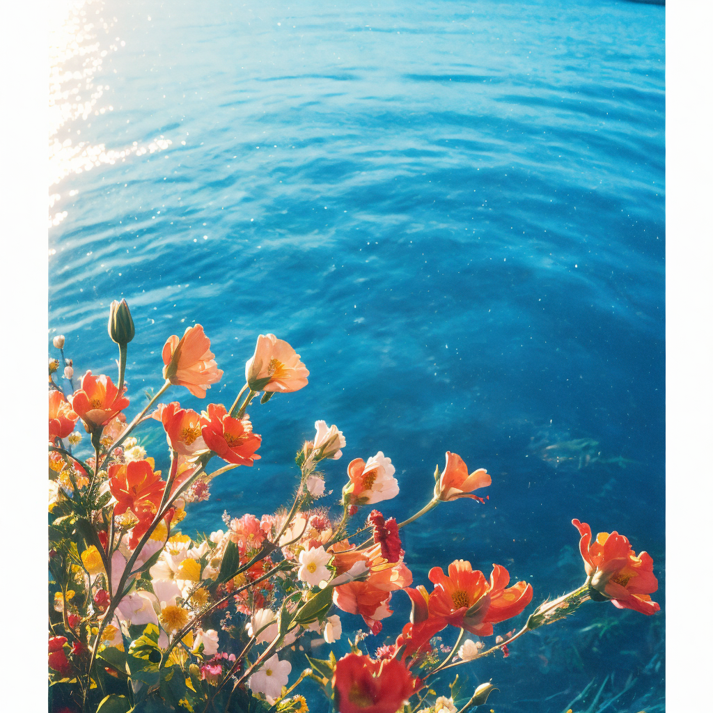 masterpiece,ultra realistic,32k,extremely detailed CG unity 8k wallpaper, best quality, (1girl:1.3), (flowers:1.2), blue, (film overlay, film grain:1.3), <lora:Heavy_grain:0.6>