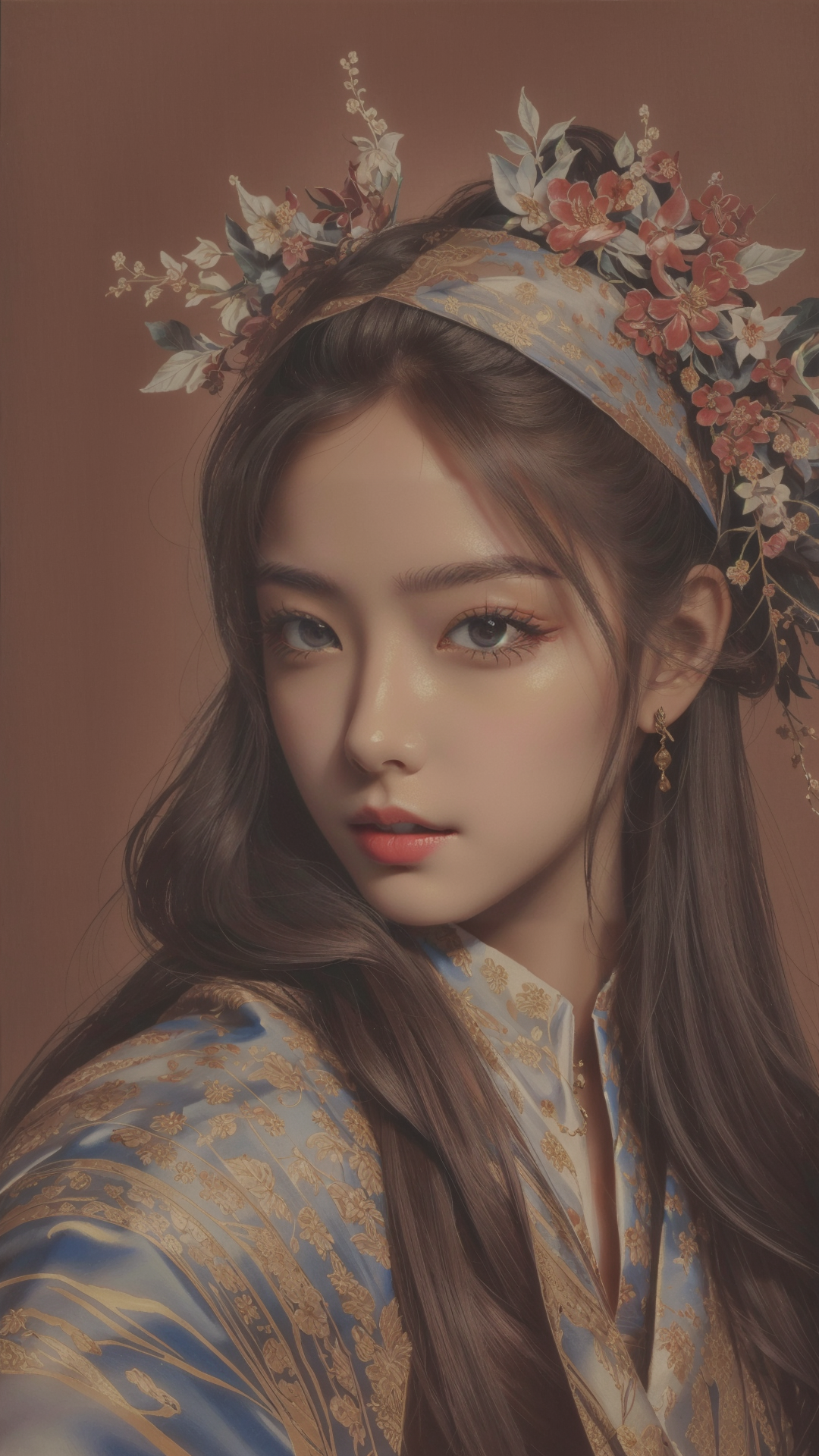 1girl, looking at viewer, <lora:Chinese style_20230607154437:0.2>,best quality, (masterpiece:1.35), silk cloth as background,detailed face, detailed background,<lora:hairdetailer:0.2>