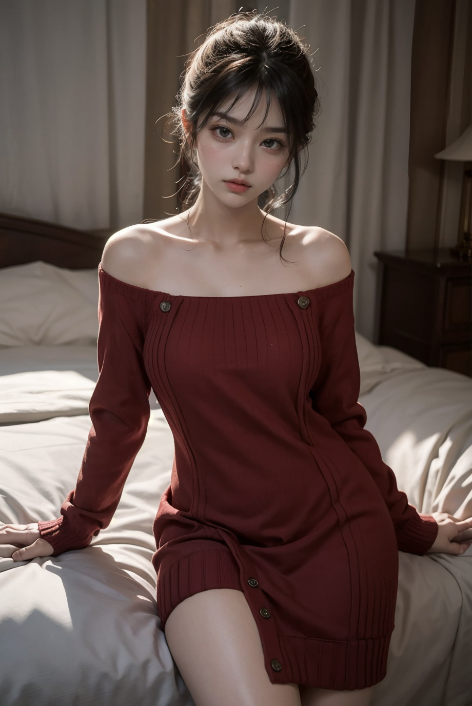 sweater dress,full body, lifelike,nsfw, Dreamlike Atmosphere, Soft Hues, Luminous Glow, beautiful and aesthetic, masterpiece, best quality, <lora:YorSweaterDressV1:1>