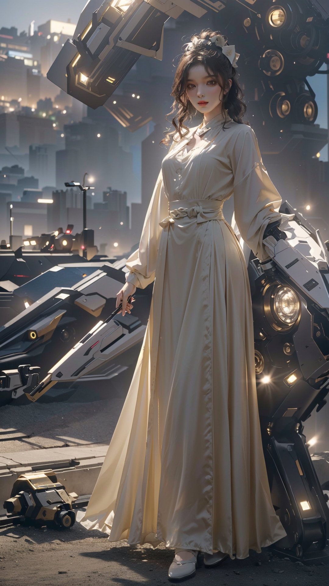 (masterpiece, top quality, best quality, official art, beautiful and aesthetic:1.2),highres, photorealistic,daytime,(1mechanical_girl:1.2), <lora:Ma-Mian_skirt:0.4> , <lora:Mecha:0.65>,multy_directioned_light, (dramatic_lighting:1.5),(bright_light:1.5),(utopia_city:1.5),outdoors, full body,complicated_fiber