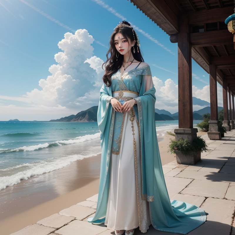 china goddess, shiny skin best quality, masterpiece, 1girl, solo, long hair, straight hair, jewelry, earing, sky, cloud, colorful, shawl, ancient chinese background, full body best quality, masterpiece, HD, Ultra realistic, CG, 8K, 32K, ray tracing, light, masterpiece,ultra realistic,32k,extremely detailed CG unity 8k wallpaper, best quality, vibrant colors, <lora:1ChinaGoddessV2-04:0.6>