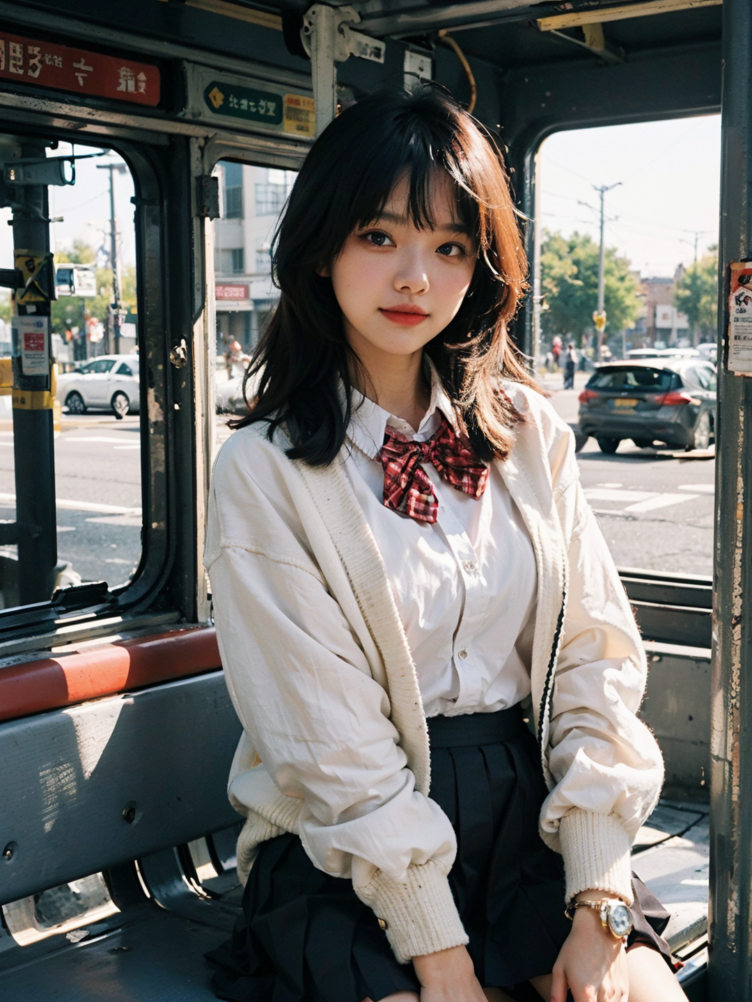 <lora:Astia3:0.6>,masterpiece,best quality,highres,rikka1,1girl,:d,takarada rikka,black hair,solo,blue eyes,wrist scrunchie,long hair,red socks,school uniform,black skirt,bangs,pleated skirt,orange scrunchie,red bow,white cardigan,long sleeves,bowtie,white shirt,miniskirt,white sweater,<lora:takarada_rikka_v1:0.6:1,1,1,1,0,0,0,0,0,0,0,0,0,0,0,0,0>,street,bus stop,sunset,shadow,dutch angle, nose blush