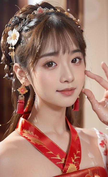 solo,ulzzang-6500-v1.1,(pretty girl:1.3),(thick bangs:1.5),(waist length hair:1.5),(upper body:0),(full body:1.2),complex background,(no makeup:1.3),visible pores,(masterpiece:1.3),incredibly_absurdres,seductive smile,amorous eyes,hanfu,looking at viewer,8k,uhd,highres,ultra high res,finely detail,highly detailed,realistic,best quality,high quality,human skin,realistic illumination,(photorealistic:1.4),(real person:1.7),(perfect face:1.3),(perfect body:1.3),lifelike,necklaces,earrings,ring,(skinny:1.5),(toned physique:1.2),(walking,catwalk:1.8),perfect high heels,beautiful feet,cute,flat chest,petite facial features,delicate face,narrow face,dainty facial structure,fine-boned face,anatomically correct,