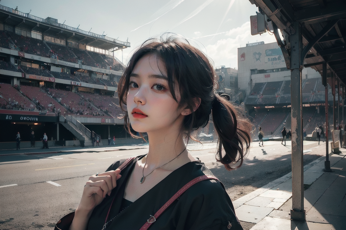 vivid illumination, enchanting elegance, atmospheric depth, masterful technique, naturalistic representations, harmonious composition, creative refinement, striking juxtapositions,evocative hues, captivating coloration, dramatic lighting, 1girl,solo, stadium, outdoor, Trust, tavern, warmly-lit, jovial, <lyco:S12 Technidraw_558123:0.4> <lora:OldEgyptAI:0.2> <lora:filmgirlFilmGrain_v40:0.3>