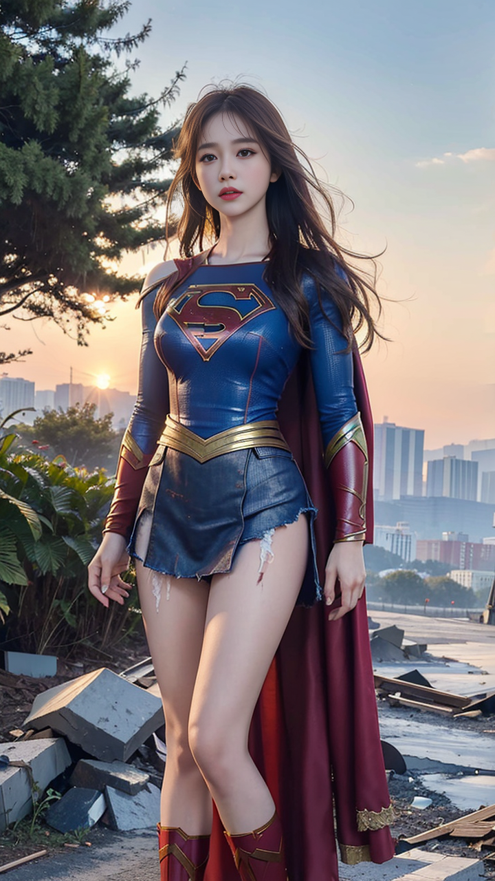 Ultra-realistic 8k CG, masterpiece,full body, The highest quality painting, vivid picture, realistic style, 1girl, sophisticated five senses and make-up, elegant figure, white skin, bruise, dirty, torn clothes, in SKY,ruins,(supergirl),<lora:mix4:0.4> <lora:koreanDollLikeness_v15:0.2> <lora:taiwanDollLikeness_v10:0.2>