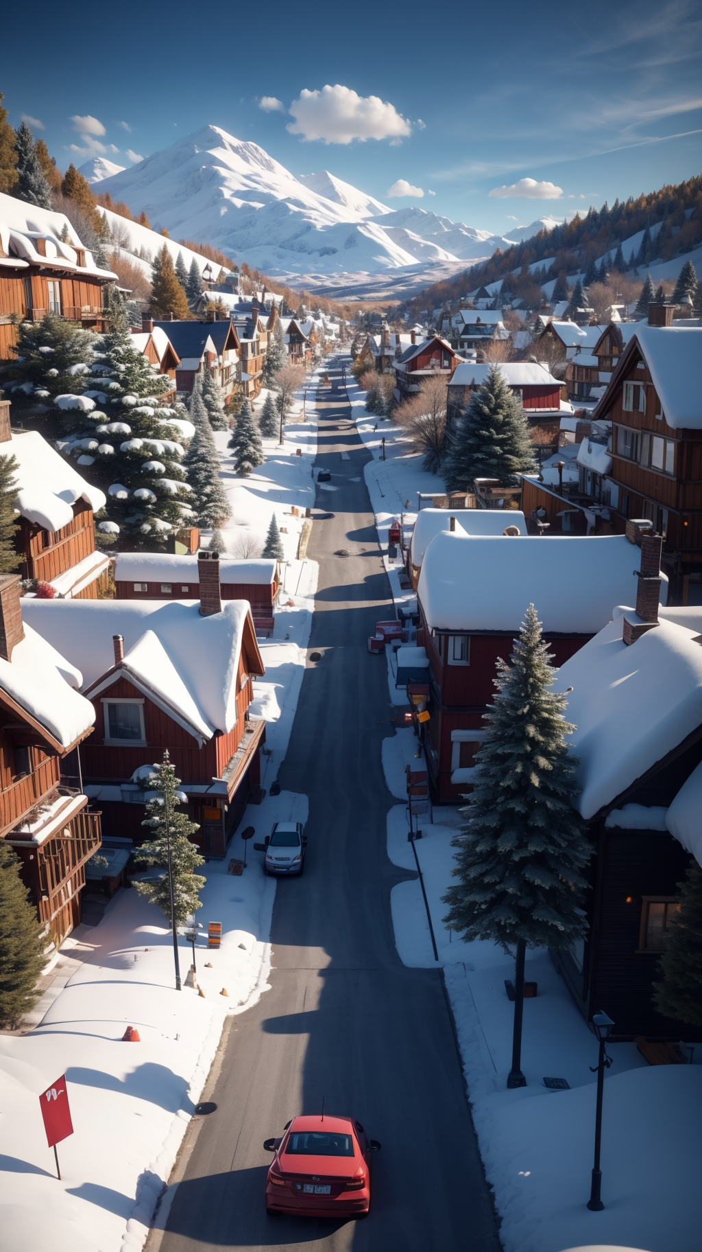 <lora:éªé:0.8>,cs,snow,outdoors,no humans,ground vehicle,scenery,motor vehicle,sky,snowman,car,tree,day,blue sky,winter,blurry,house,building,road,cloud,depth of field,aerial view,