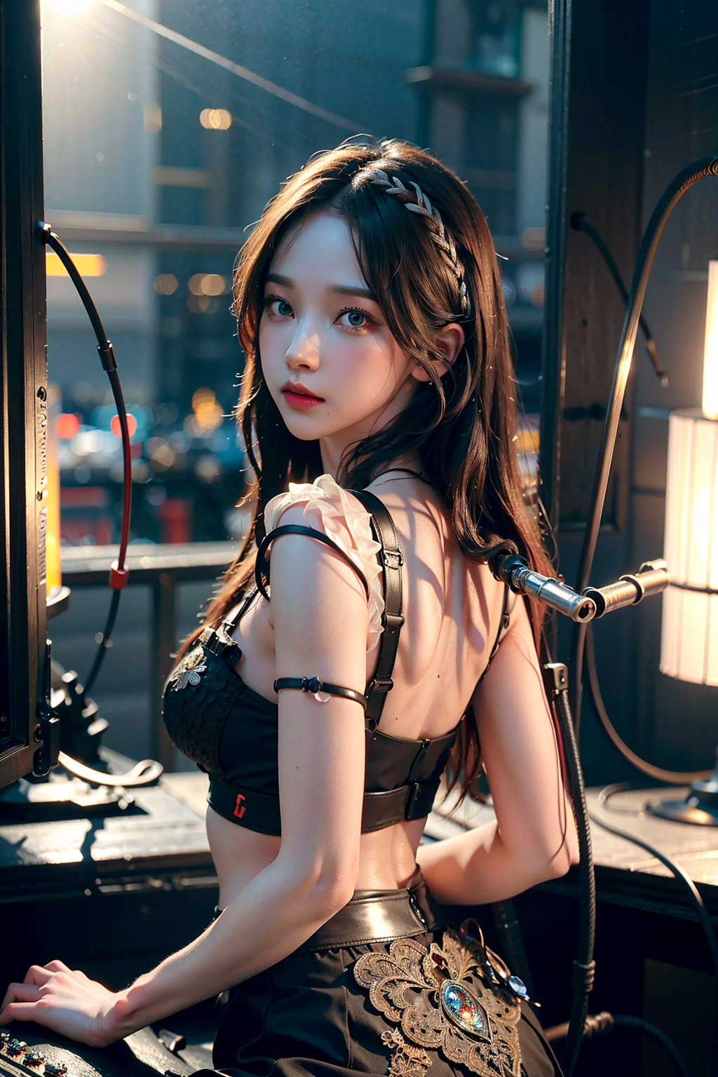 RAW,(8k, best quality, masterpiece:1.2),(intricate details:1.4),(photorealistic:1.4),octane render, complex 3d render ultra detailed, studio soft light, rim light, vibrant details, ultra detailed, realistic skin texture, detailed face, beautiful detailed eyes, extremely detailed CG unity 8k wallpaper, makeup,(perfect anatomy),(wide hip:1.3), (Epic), (masterpiece, top quality, best quality, official art, beautiful and aesthetic:1.2), (1girl:1.3), extreme detailed,colorful,highest detailed ((ultra-detailed)), (highly detailed CG illustration), ((an extremely delicate and beautiful)),(from side),cinematic light,((1mechanical girl)),solo,full body,(((masterpiece))), (((best quality))), ((ultra-detailed)), (highly detailed CG illustration), ((an extremely delicate and beautiful)),(cute delicate face),cinematic light,((1mechanical girl)),solo,full body,(machine made joints:1.4),((machanical limbs)),(blood vessels connected to tubes),((mechanical vertebra attaching to back)),((mechanical cervial attaching to neck)),((sitting)),expressionless,(wires and cables attaching to head and body:1.5),(character focus),science fiction, <lora:aespakarina-v5:1>