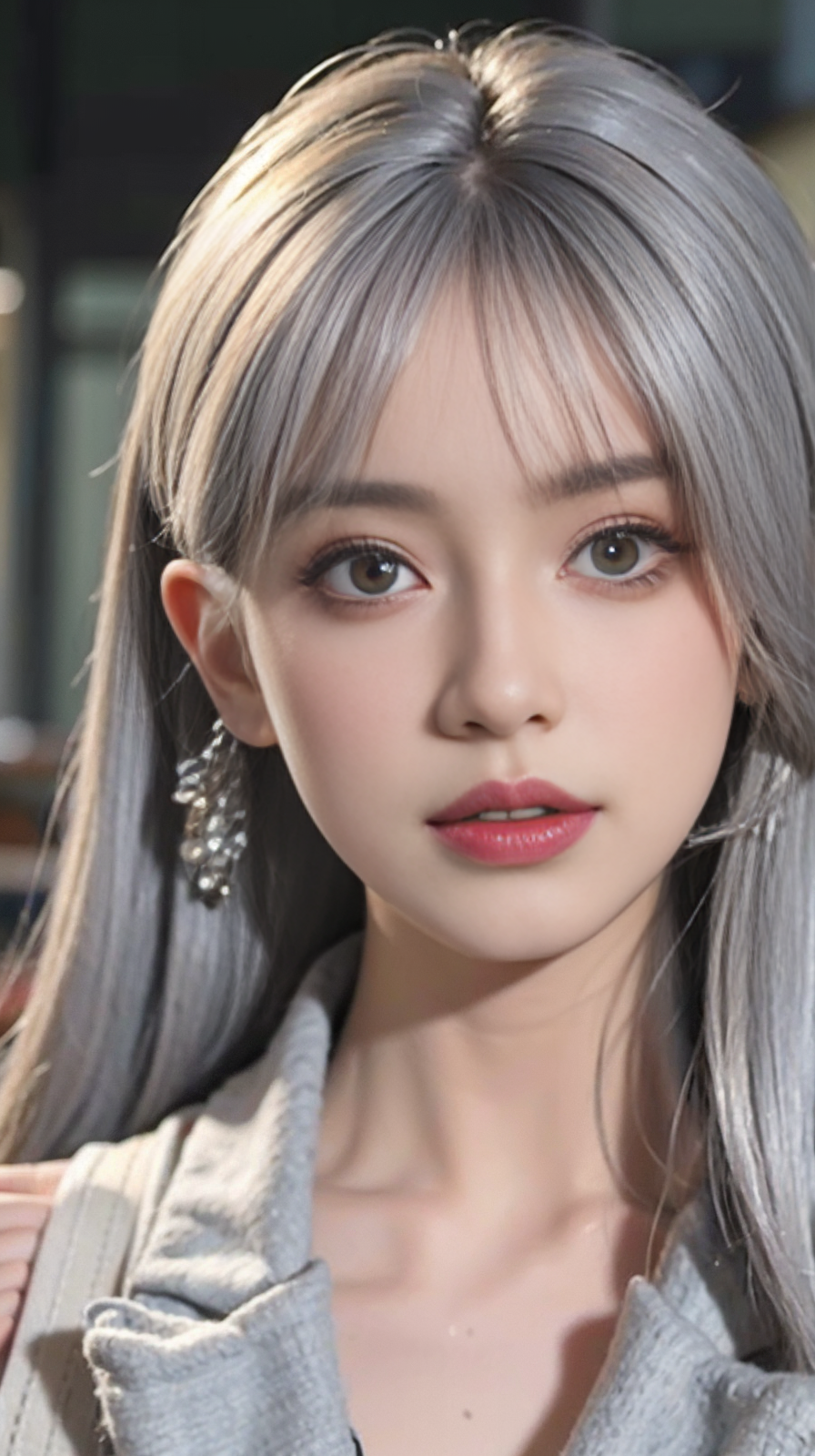 mix4,Best quality, masterpiece, ultra high res, (photorealistic:1.4), raw photo, 1girl, silver hair, shiny skin, dramatic lighting <lora:mix4:0.6>