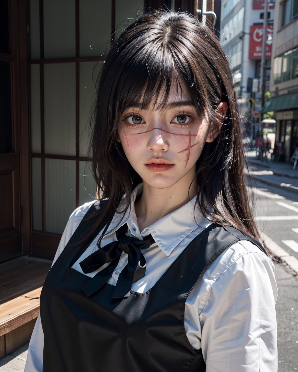 (Straight hair:1.8), (beautiful ears), (Hair covering ears, Ears hidden by hair:1), extremely beautiful ear, (extremely beautiful and cute:1), (messy-Unruly-hair:1), (photorealistic:1.4), (Best quality, masterpiece, ultra high res, raw photo:1), 1girl, (teenager, young, cute:1.2), (Asian, japanese), (Aragaki Yui, Hashimoto Kanna), (Deserted scene, Empty place, No people around:1.0), (solo:1.0), (Light shining on face, Illuminated face:1.4), (black hair), (bangs:1.4), looking at viewer, <lora:japanesedolllikenessV1_v15:0.05>, <lora:asianGirlsFace_v1:0.05>, <lora:add_detail:2>