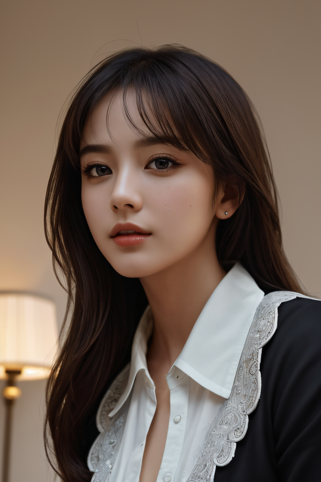 (masterpiece:1.2, best quality), (finely detailed beautiful eyes: 1.2), (extremely detailed 8k wallpaper, masterpiece, best quality, ultra-detailed, best shadow), (detailed background), (beautiful detailed face, beautiful detailed eyes), High contrast,(masterpiece:1.4), (best quality:1.4), (high details:1.4), (high resolution:1.4), (detailed:1), finely detailed skin, sharp focus,1girl, light smile, shirt with collars, waist up, dramatic lighting, from below,good hand, wallpaper, dynamic angle,beautiful detailed glow, full body,<lora:film:0.4:PALETTE>,<lora:detail:1.2>,<lora:perfecteye:0.7>