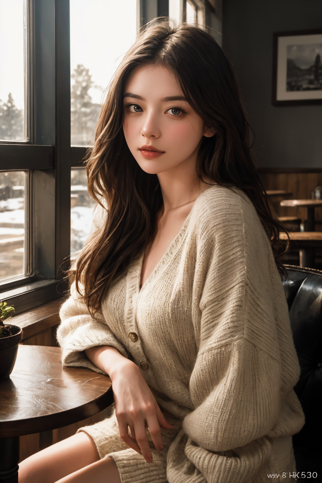 HDR photo of a detailed portrait of a young, beautiful Swedish woman seated in a cozy cafe, Nordic features, captivating eyes, and natural beauty, warm ambiance, soft lighting and subtle, inviting decor, tranquil backdrop, RAW photo, (high detailed skin:1.2), 8k UHD, DSLR, soft lighting, high quality, film grain, Fujifilm XT3, epiCPhoto, A style of drawing that uses a plain, neutral background to draw attention to the subject of the drawing . High dynamic range, vivid, rich details, clear shadows and highlights, realistic, intense, enhanced contrast, highly detailed