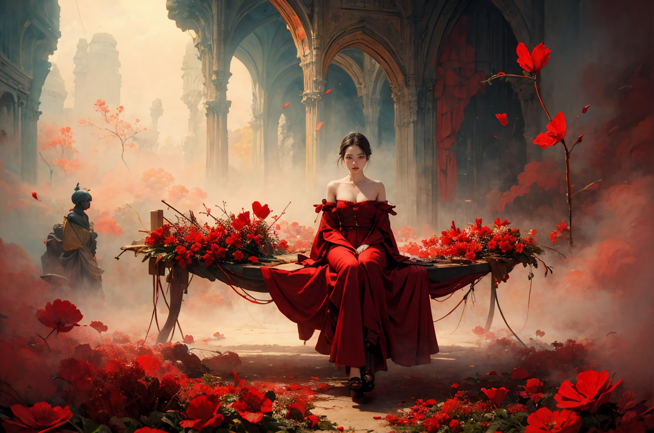 <lora:zwd_v2:0.5> zwd, lifelike, red petal, atmospheric, ethereal, 1girl, full body , sitting, beautiful and aesthetic, masterpiece, best quality,