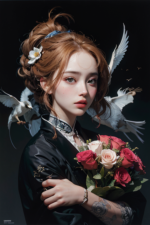 official art, unity 8k wallpaper, ultra detailed, beautiful and aesthetic, masterpiece, best quality, (zentangle, mandala, tangle, entangle), 1girl, many flowers, extremely detailed, dynamic angle, cowboyshot, the most beautiful form of chaos, elegant, a brutalist designed, vivid colors, romanticism, by james jean, roby dwi antono, ross tran, francis bacon, michal mraz, adrian ghenie, petra cortright, gerhard richter, takato yamamoto, ashley wood, atmospheric, ecstasy of musical notes, streaming musical notes visible, translucency, <lora:LowRA:0.1>, <lora:OC:0.1>, <lora:FilmG2:0.1>