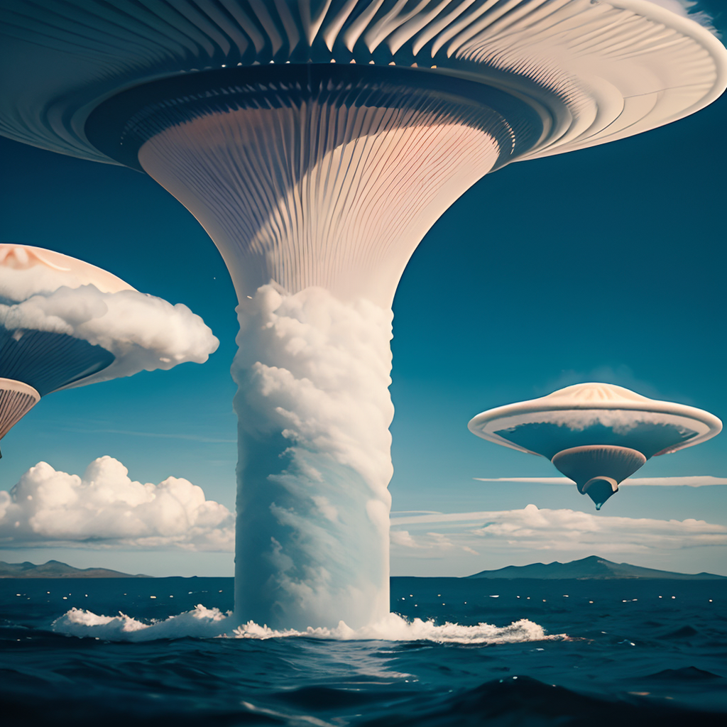 giant cilindrical transparent column(water:1.4) of water reaching the sky, (Lenticular cloud:1.4)