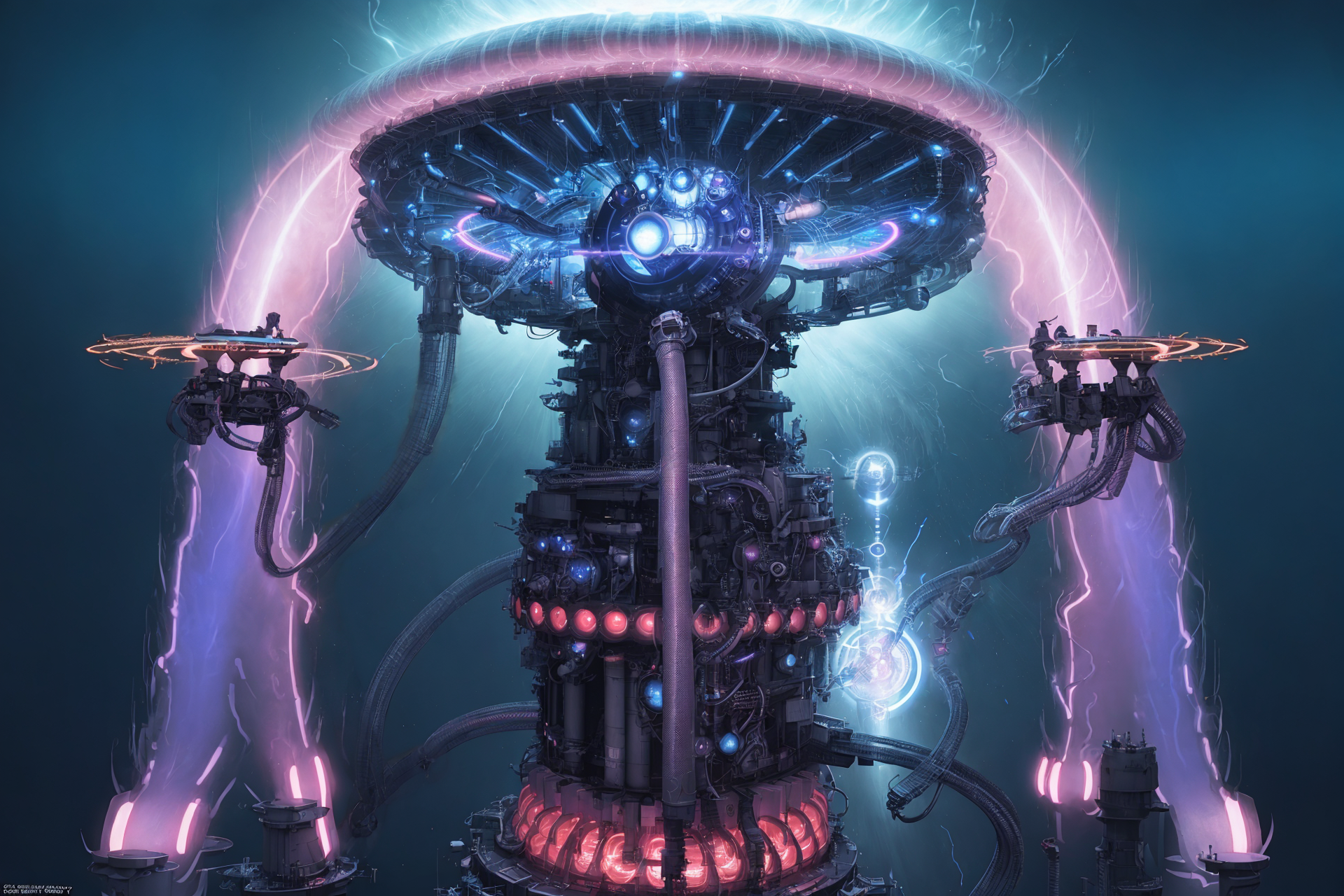 massive ocean fusion reactor, blue neon lights, a matte painting by james gurney, trending on cgsociety, oversaturated, ultra sharp, hyper realistic