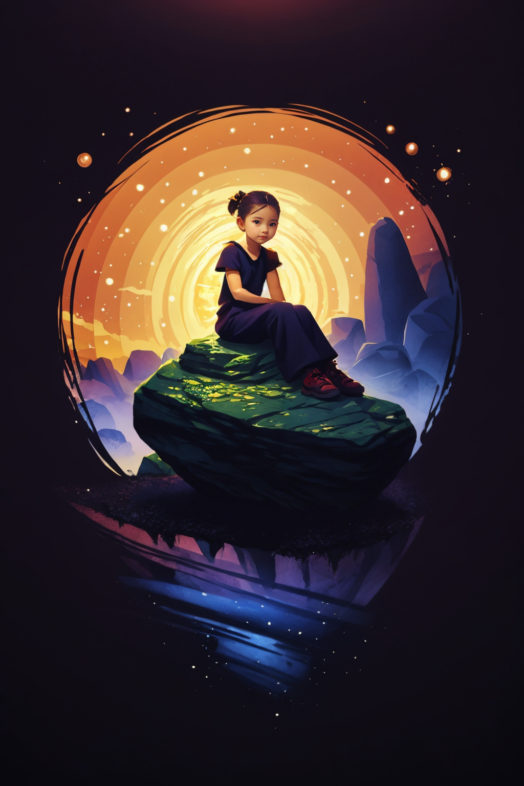 masterpiece, best best quality, Art, Circle, 1 little girl sitting on rock, look at viewer, <lora:CircleArt_Sora:0.8>