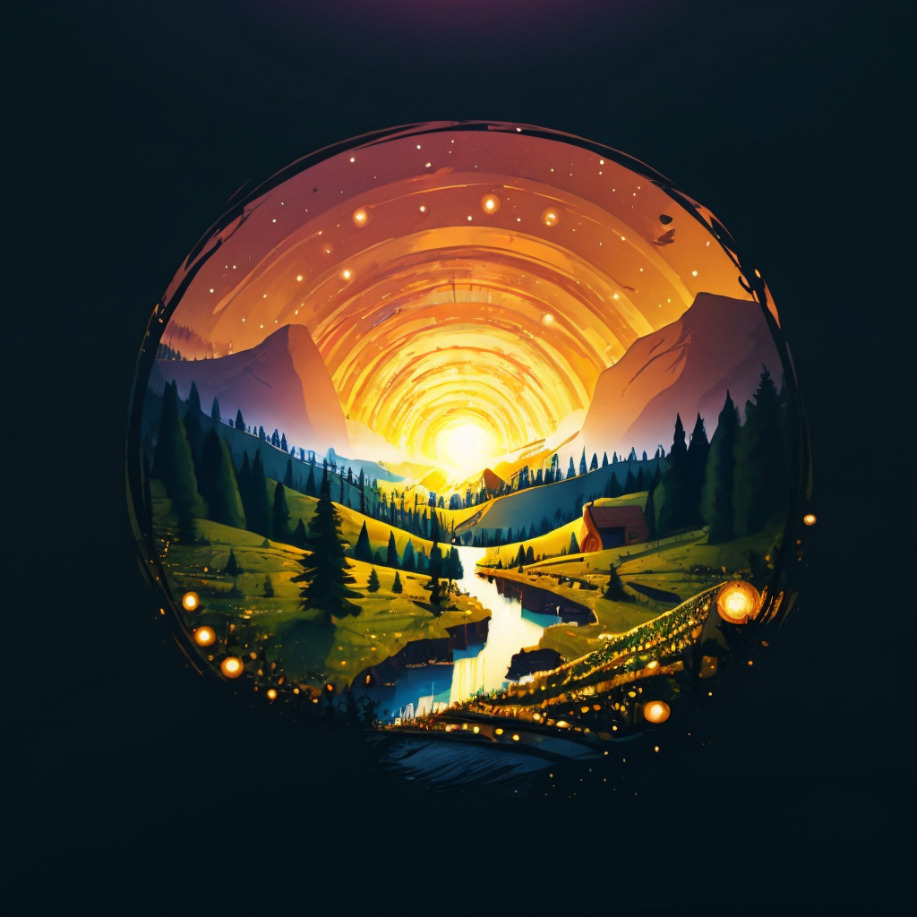 masterpiece, best best quality, Art, Circle, bear, Wide Shot, nature landscape, <lora:CircleArt_Sora:0.9>