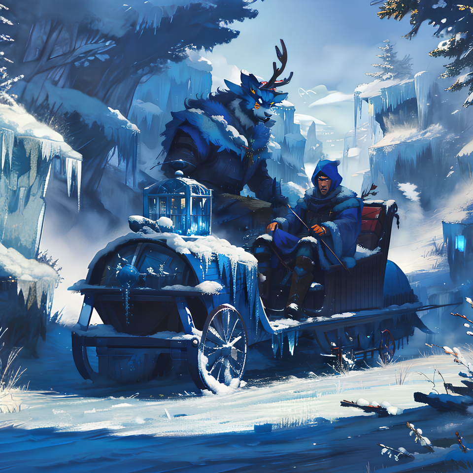 (high quality, masterpiece), bluice_lora, (Oltopia), (sleigh, apocalypse, abandoned, overgrown), ice forest, (blue), blue background, scenery, <lora:icetopia_lora:0.8>, <lora:oltopia_yiu_v10:0.7>