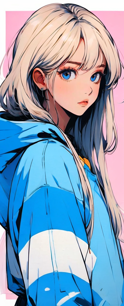 high quality,masterpiece, Flat style,<lora:20240103-1704255259560-0020:0.8>,gyaru,curvy,centre parting bangs,hoodie,