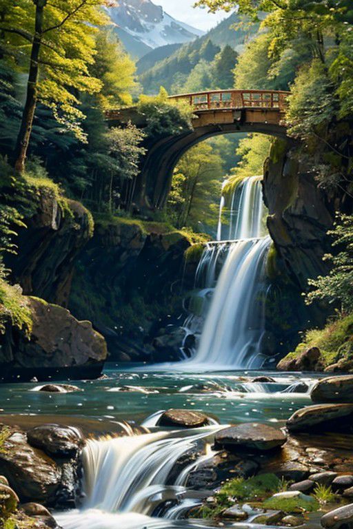 spectacular innovation, a beautiful scenery meticulously assembled with semiconductors and thin wires, demonstrating exceptional quality and ultra-detailed craftsmanship in UHD. The scene unfolds a serene landscape, where majestic mountains in the background are intricately formed from layered semiconductor materials, and a tranquil river is depicted with a web of glistening thin wires, flowing through a lush valley. The unique use of semiconductors and wires adds depth and a futuristic texture, reimagining the essence of the natural world through a high-tech lens. The play of light off the metallic surfaces creates a dynamic interplay of light and shadow, unveiling subtle details of trees, rocks, and water reflections, all precisely engineered with care and precision. The overall composition is a fusion of technology and art, radiating a peaceful yet surreal quality, inviting viewers to immerse themselves in this innovative, electronically crafted natural sanctuary