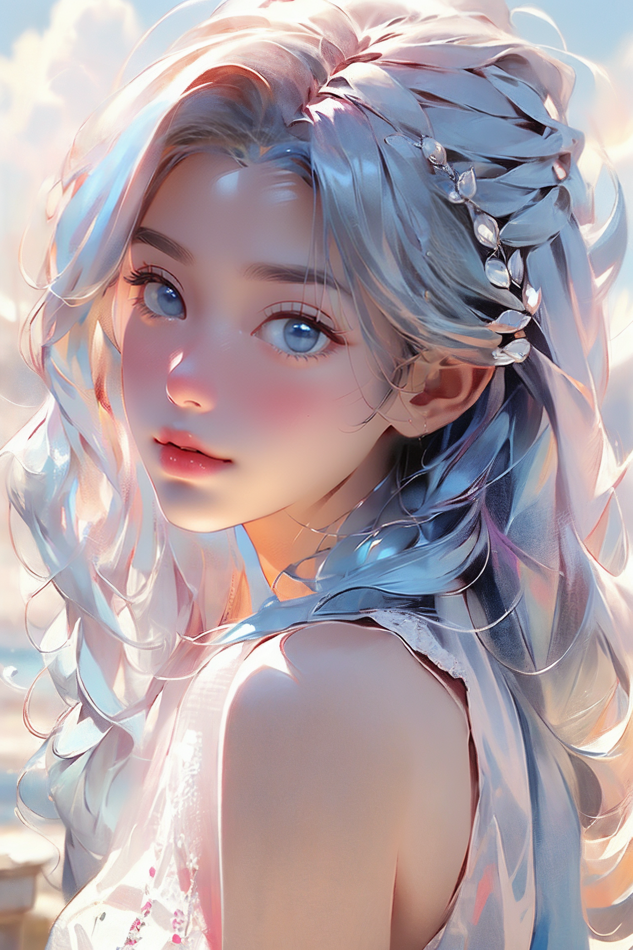 (best quality),[masterpiece],((beautiful:0.75) cute girl:0.75),(EOS R8,50mm,F1.2,8K,RAW photo:1.2),Professional,ultra-fine painting,(blue hair:1.4),standing,outdoors,(front:1.3),cloud,sky,seaside background,, eyelashes, extremely detailed CG unity 8k wallpaper,masterpiece, best quality, ultra-detailed, beautiful detailed eyes:1.2,best illumination, (best shadow, an extremely delicate and beautiful, bloom), <lora:fenhongnvhai:1>